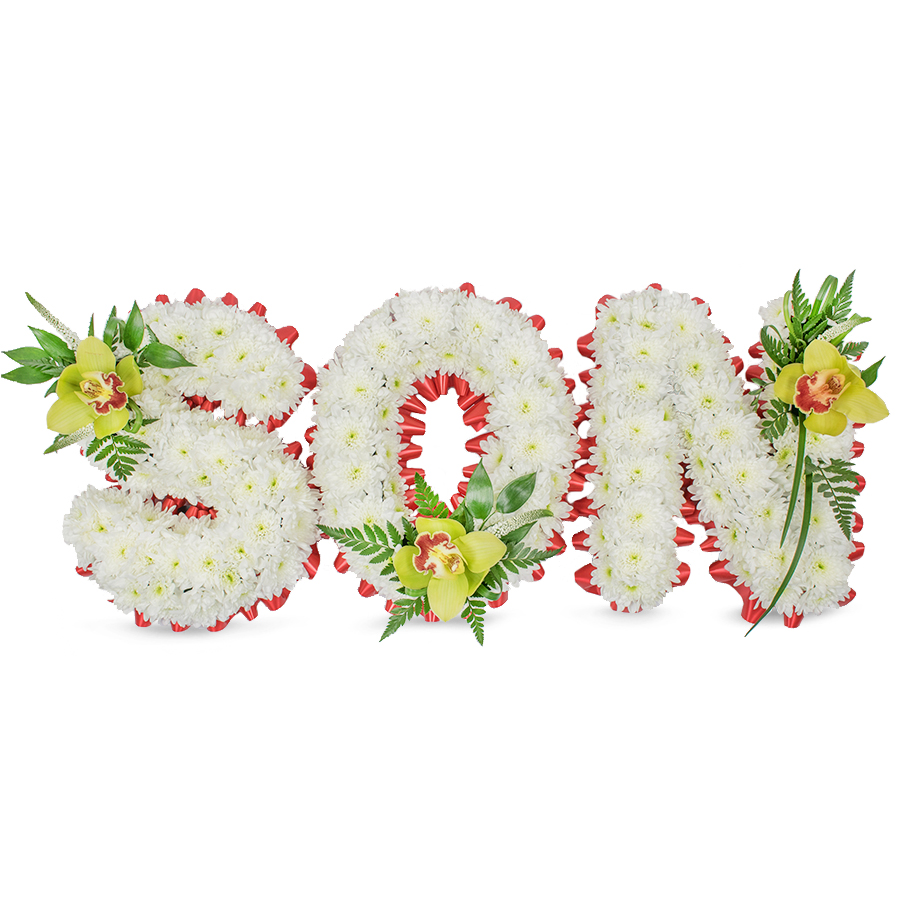 Express your deepest love and remembrance with the Heavenly Son Tribute from Flowers Bowes Park. This elegant white funeral tribute features delicate white chrysanthemums, luxurious orchids and graceful white veronica, thoughtfully arranged with ruscus, leather leaves and bear grass for a serene, peaceful finish. Designed to convey heartfelt sympathy and everlasting remembrance, it's a dignified choice for a son's funeral or memorial service.